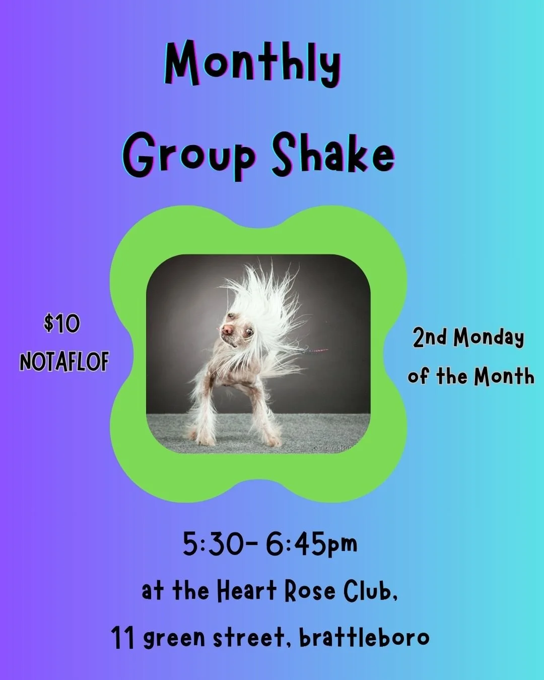 At the Heart Rose Club, 11 Green Street, Brattleboro (the old Shriner’s Hall), Top Floor